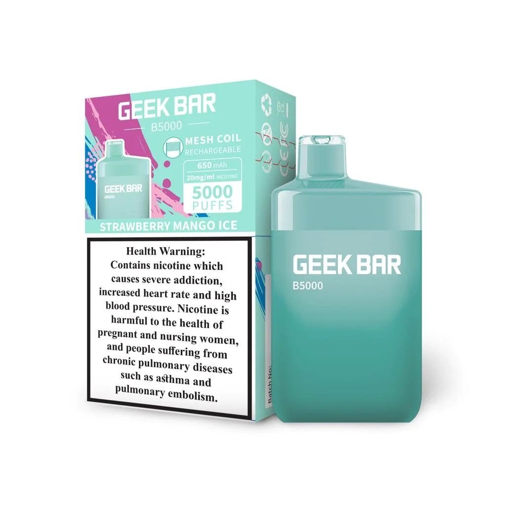 Geek Bar B5000 Disposable, offering up to 5000 delicious puffs, 14mL prefilled E-Liquid capacity, and is rated for 2% & 5% nicotine strength.